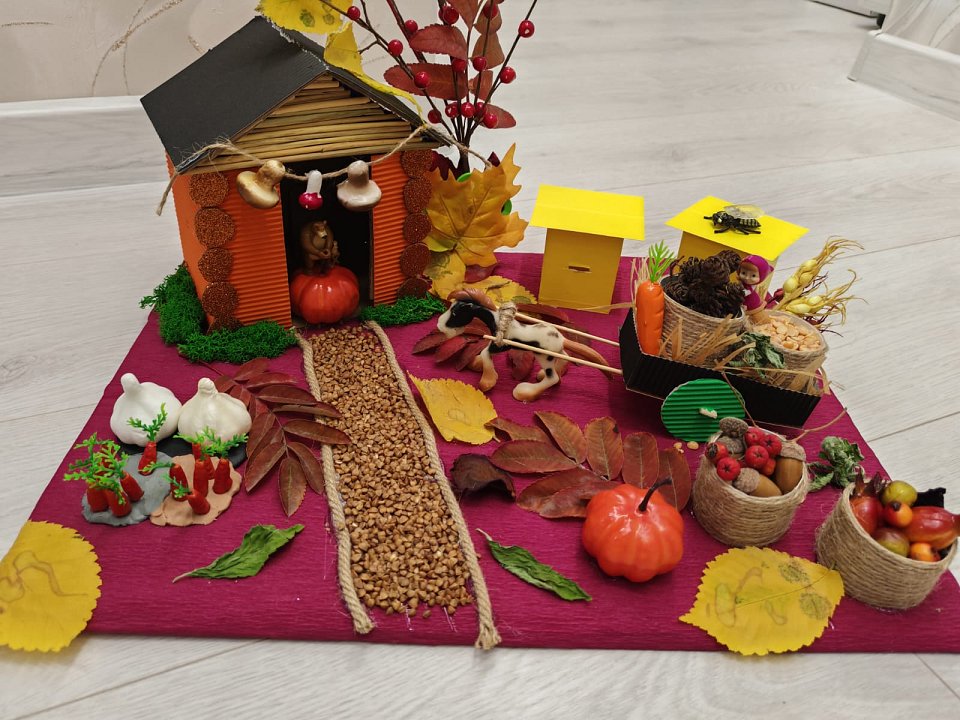 Работа выполнена из сезонного осеннего, бросового материала с использованием материалов для творчества