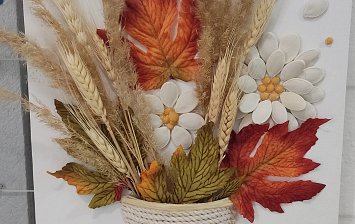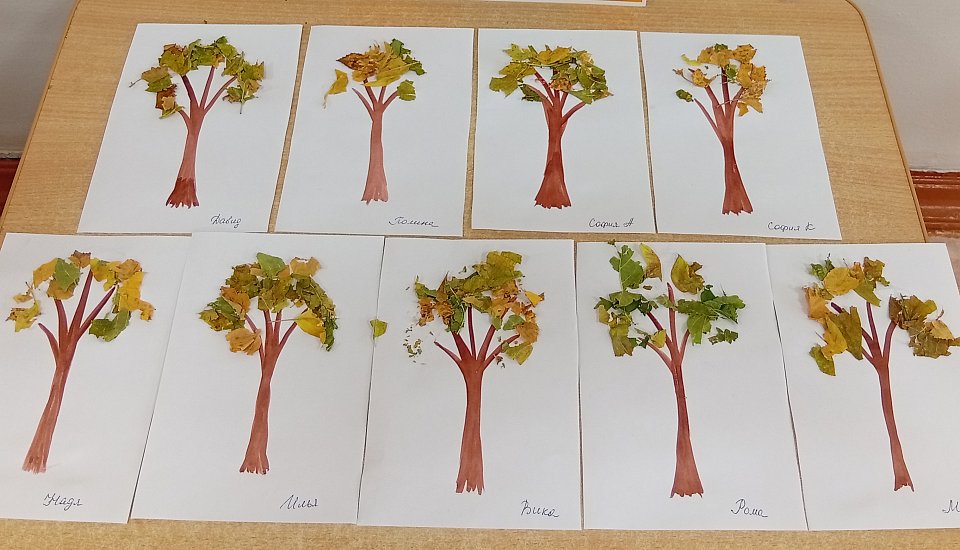 Дети группы раннего возраста трёх лет изготовили аппликацию с использованием настоящих листьев