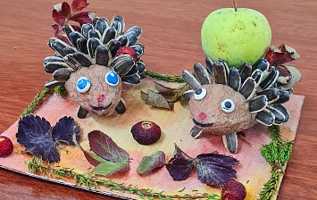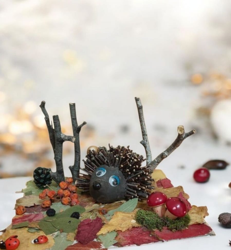 6лет, работа из природного материала: листья, шишки, ветки, желуди, мох.