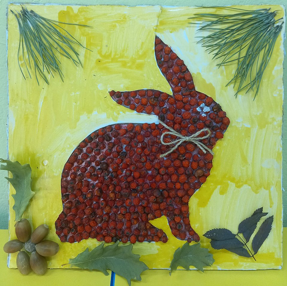 5 лет, белочка выложена из ягод рябины.