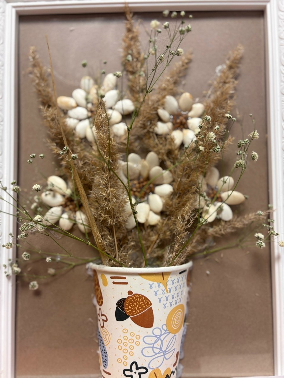 Работу выполнила Варвара 4 года, с использованием природного материала