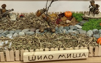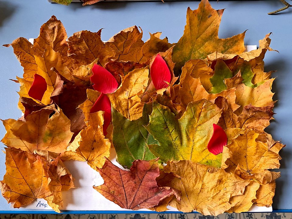 4г. - возраст участника; работа выполнена из природного материала (кленовые листья)