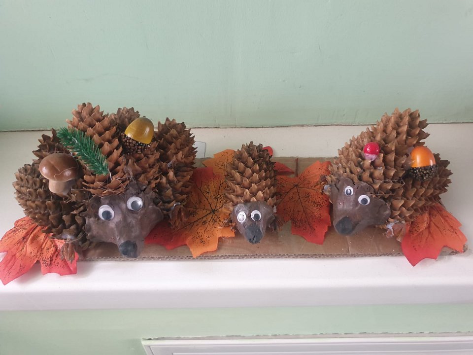 4 года, поделка из природных материалов, шишки, пластелин