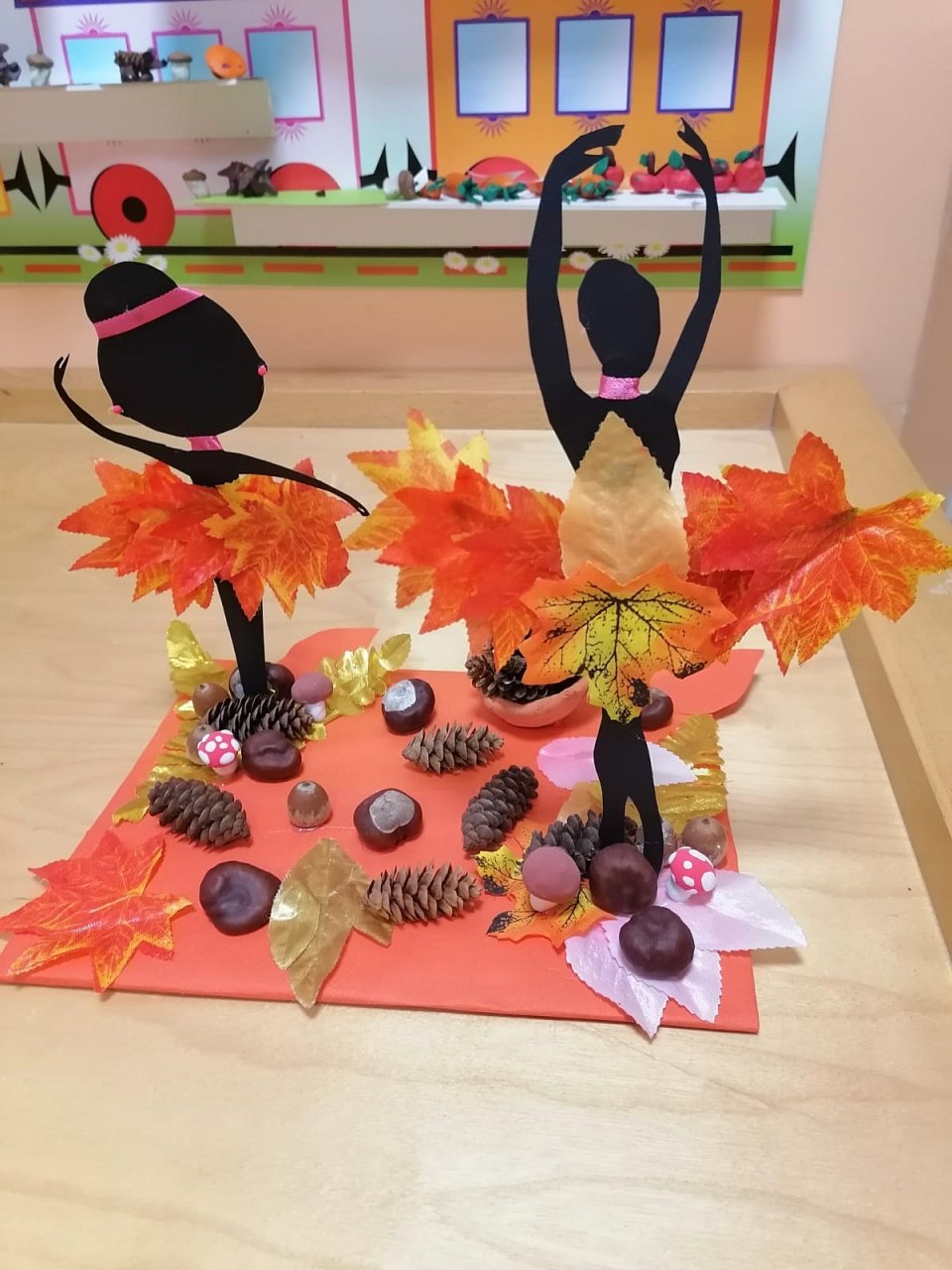 4 года, цветная бумага, листья, шишки