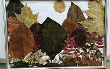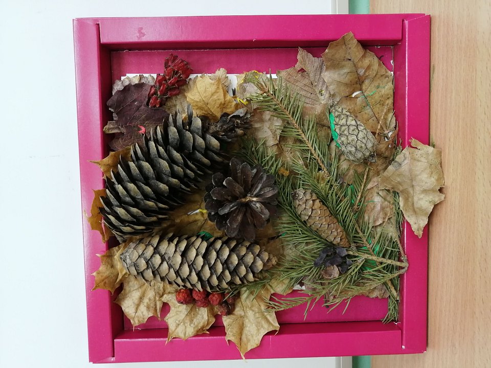 Аппликация, картон, листья деревьев, шишки,рябина, клей ПВА