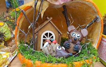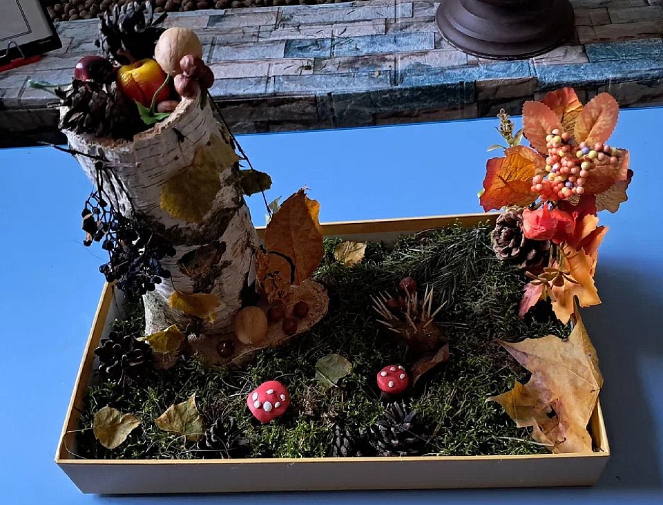 Участнику 6 лет. Работа выполнена из природного материала и готовых форм