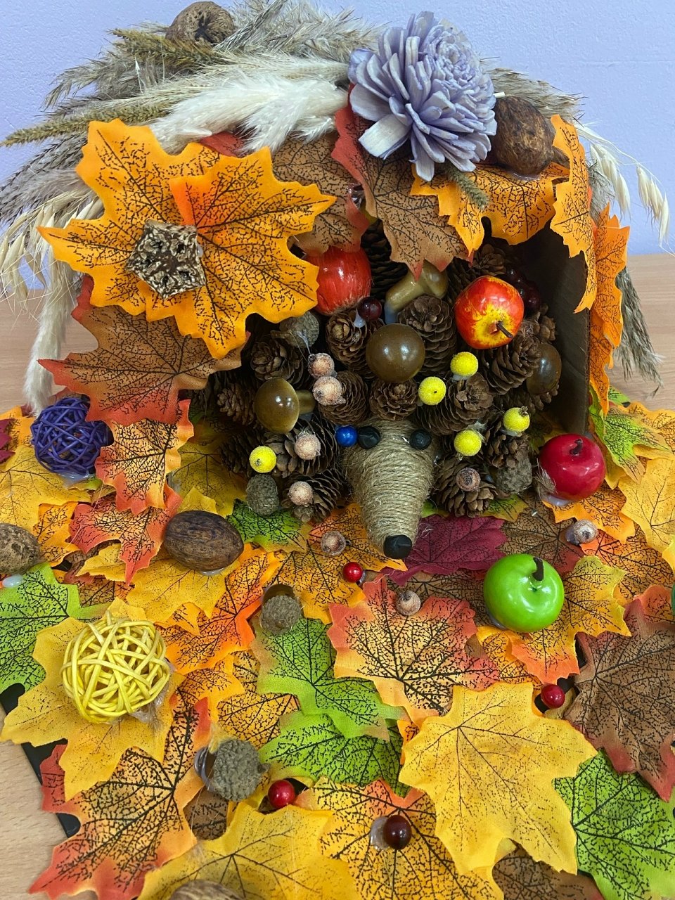Возраст 6 лет, работа сделана из природных материалов с использованием декора.