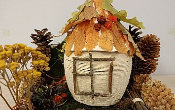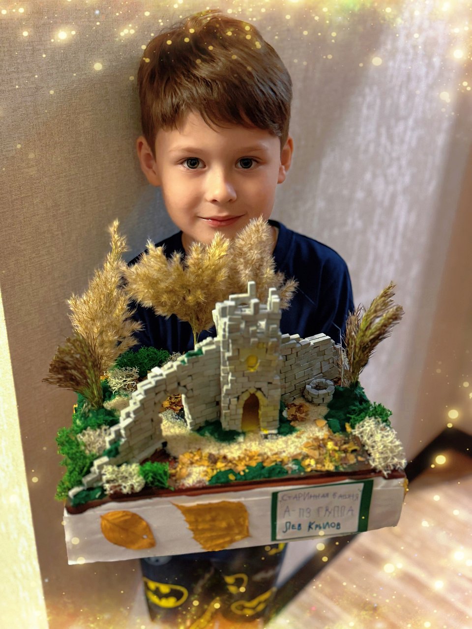 6 лет , по ссылке вы можете посмотреть как я делаю эту осеннюю поделку , как я клею макет, делаю кладку из кирпичей и тд