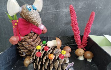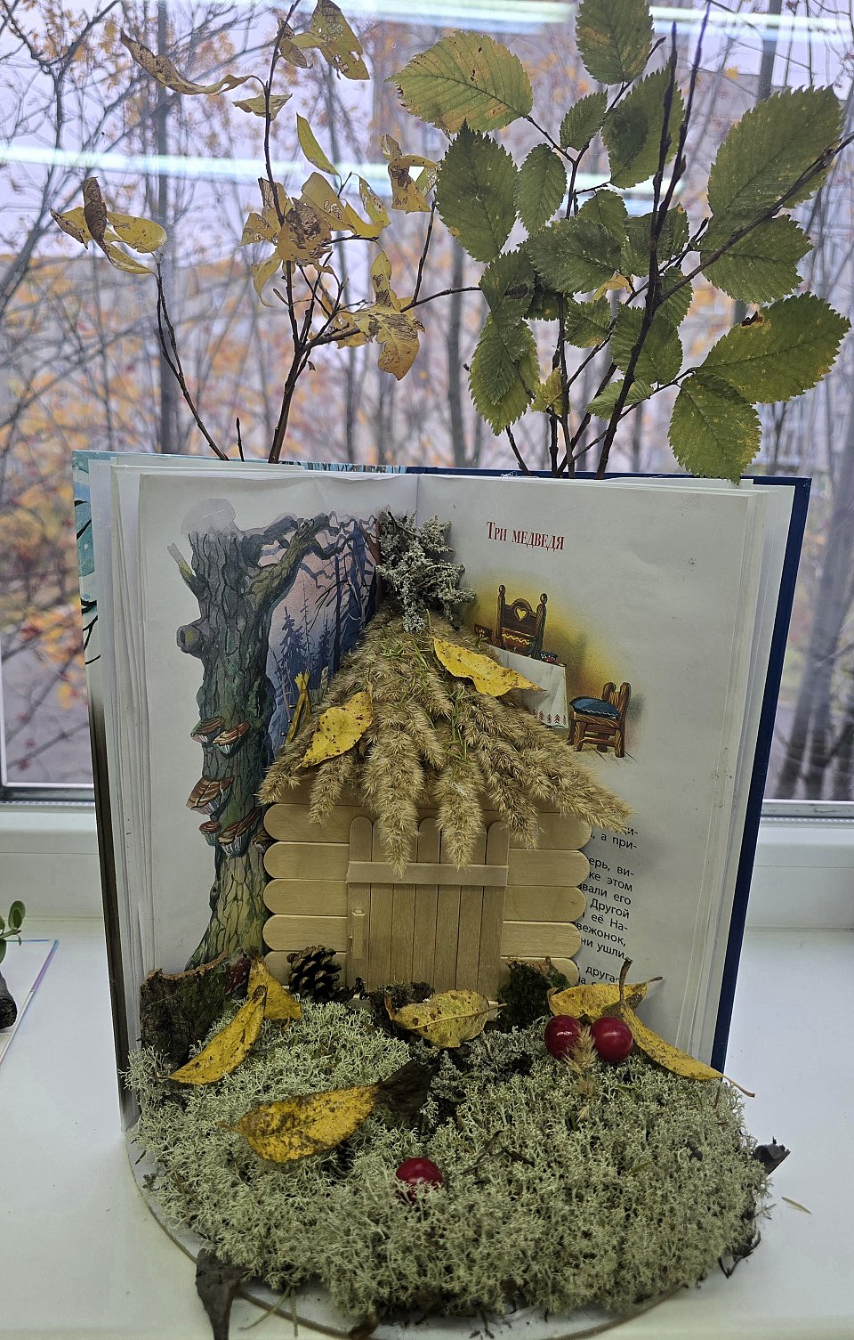 Объёмное изображение осеннего уголка леса с использованием не только природных материалов , но и книги .