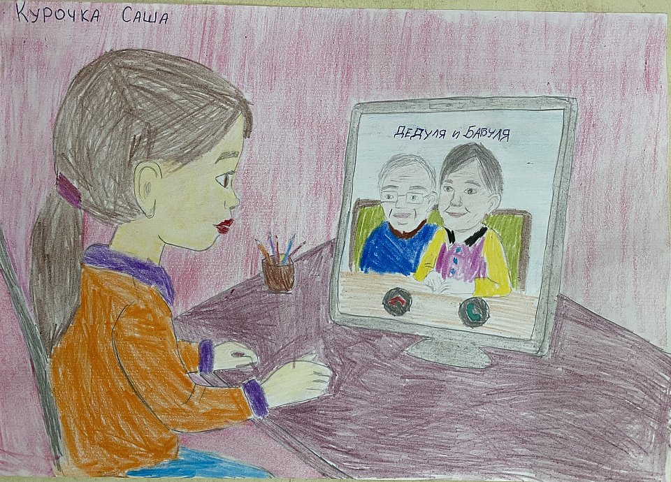 Александра смотрит на фотографию своих бабули и дедули, когда сильно по ним скучает