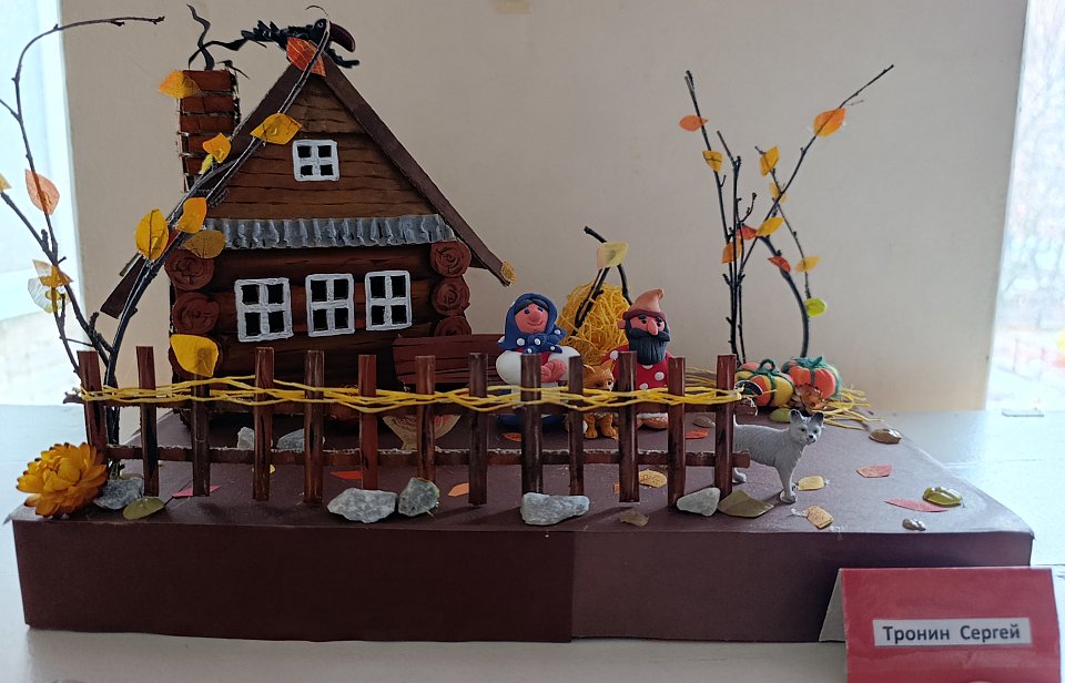 5 лет. Природный материал, воздушный пластилин, гофрированный картон, природный камень, мелкие игрушки, искусственное волокно.