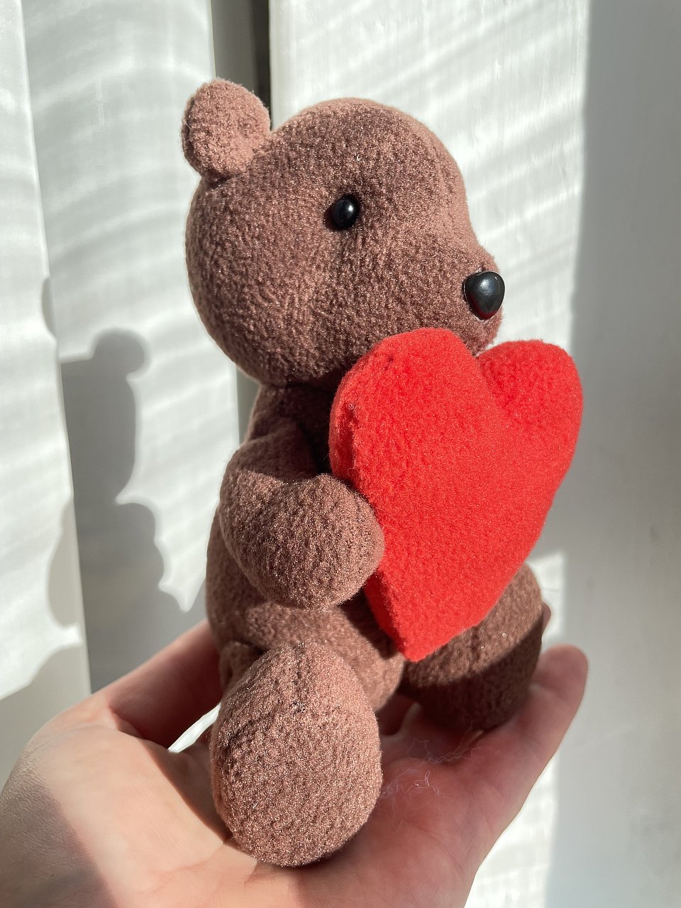 Работа выполнена из флиса и наполнителя. Используемые швы петельный и потайной.