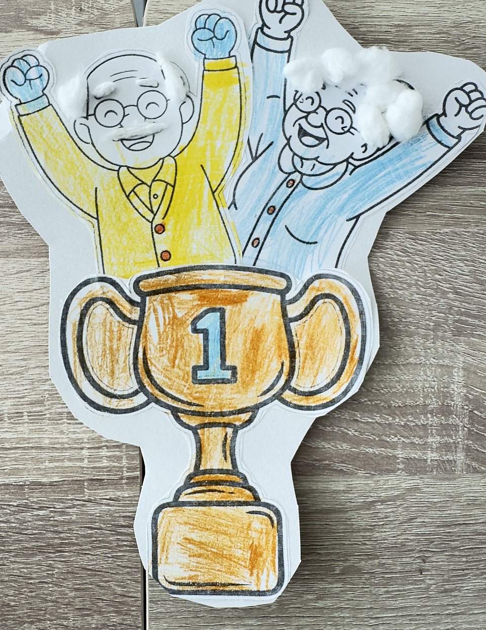 Выполнено с помощью цветных карандашей,бумаги,клея и ваты.