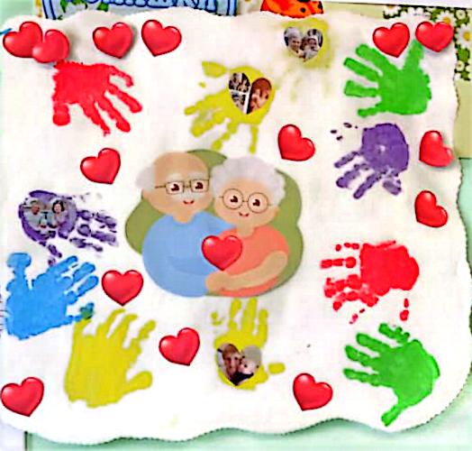Группа раннего возраста от 1г до 2л. Ватман,гуашь, кисть, фото бабушек и дедушек Рисовании ладошками с элементами апликации.