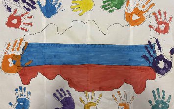 Коллективная работа детей 4-5 лет. Работа выполнена в технике аппликации и пластилинографии. Использовалась цветная бумага, клей, ножницы и пластилин.
