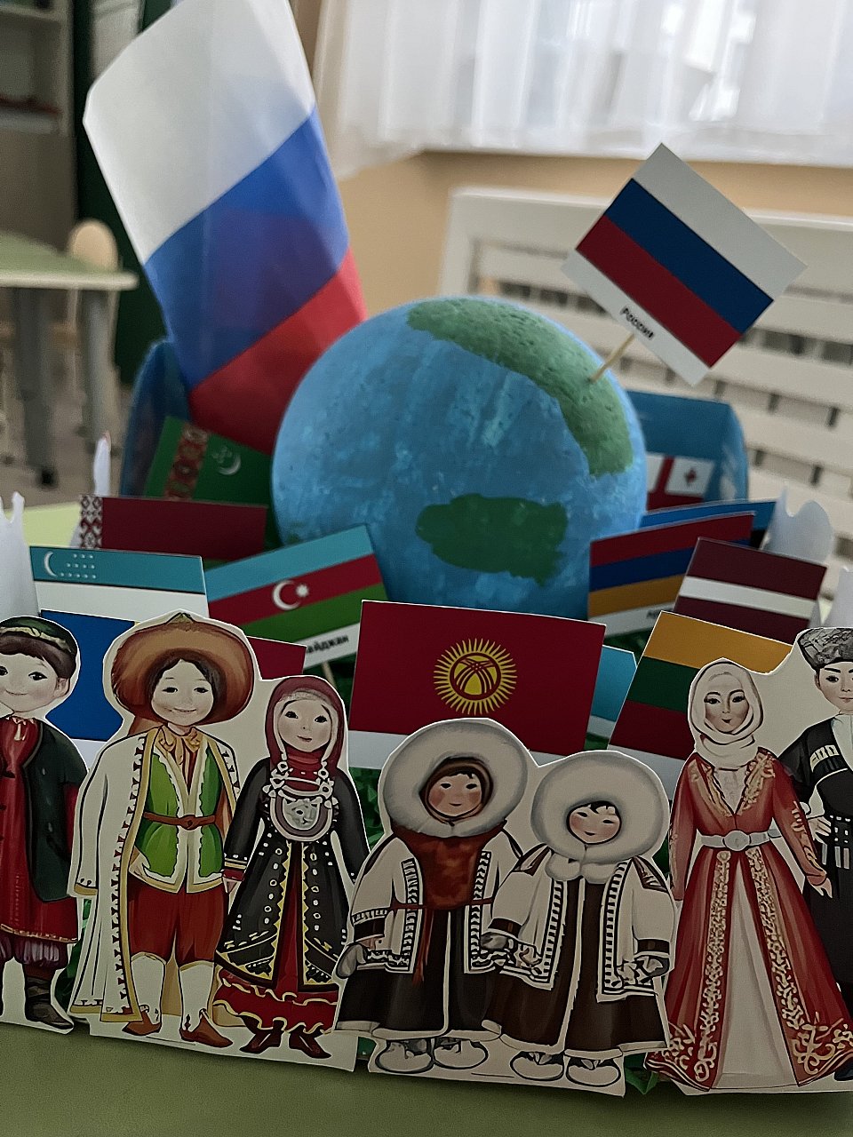 Нам понадобилось:картон, шар из пенопласта,флаги разных городов из бумаги,мишура внутрь спрятать пенопласт