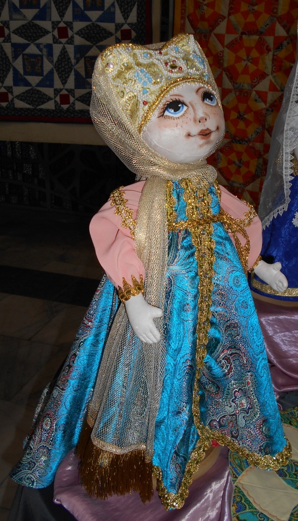 В работе использованы материалы и ткани приближенные к тканям народного костюма. Головной убор и костюм выполнен по чертежам народного костюма. Возраст исполнителя 15 лет.