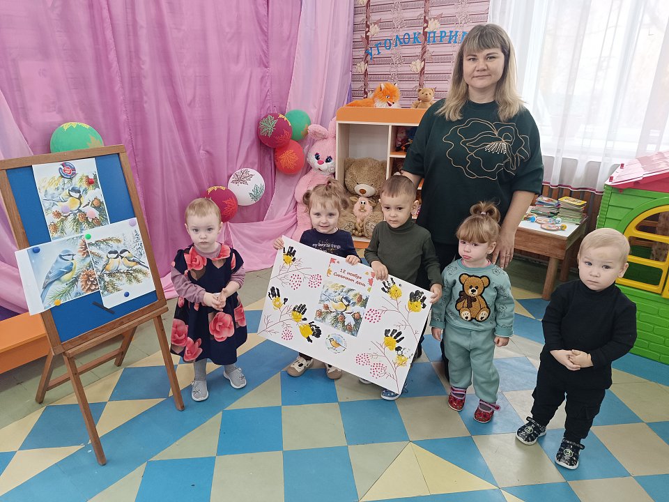 Коллективная работа, нетрадиционная техника рисования ладошками.Возраст участников 2-3 года