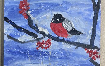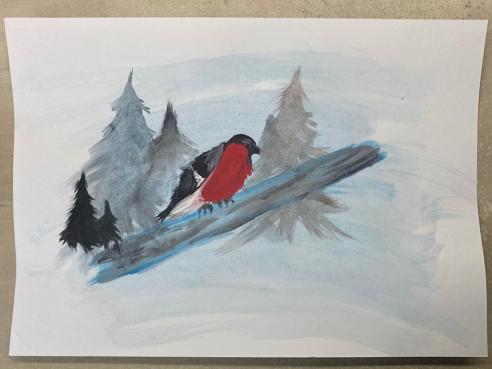 13 лет. Работа выполнена гуашью в технике "по сухому"