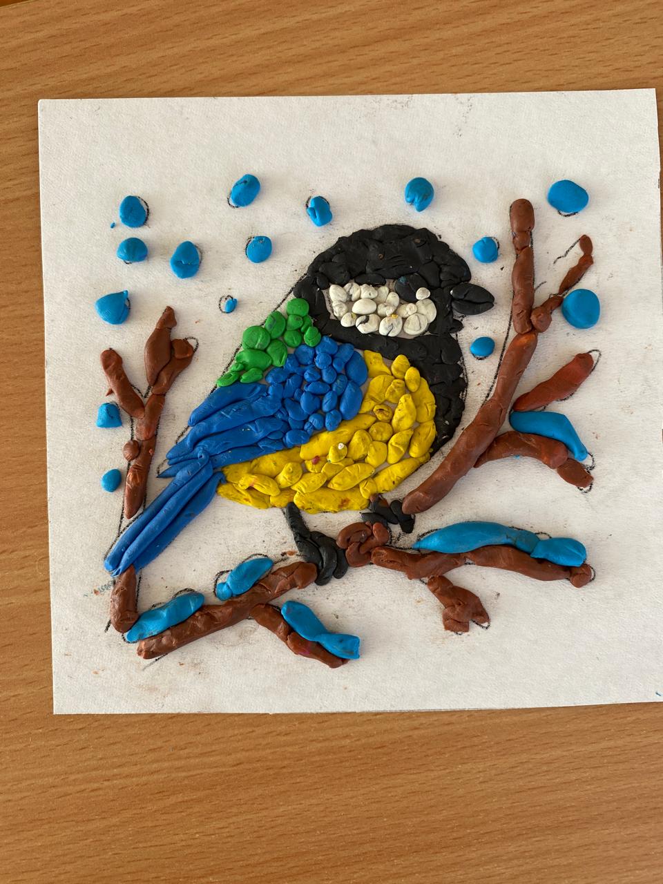 В работе использовалась материалы такие как пластилин, бумага. Работа выполнена в техника аппликация