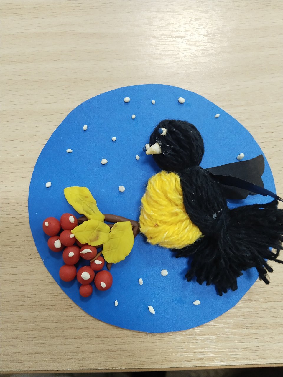 Аппликация (пластелин и нитки для вязания ручной работы), возраст 5 лет.