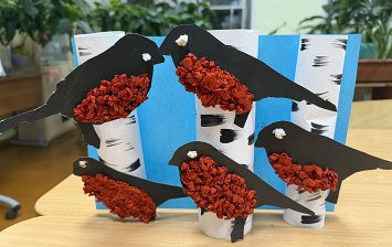 6 лет, обрывная аппликация: цветная бумага,картон,бумажные салфетки,клей ПВА,деревянная рамка.