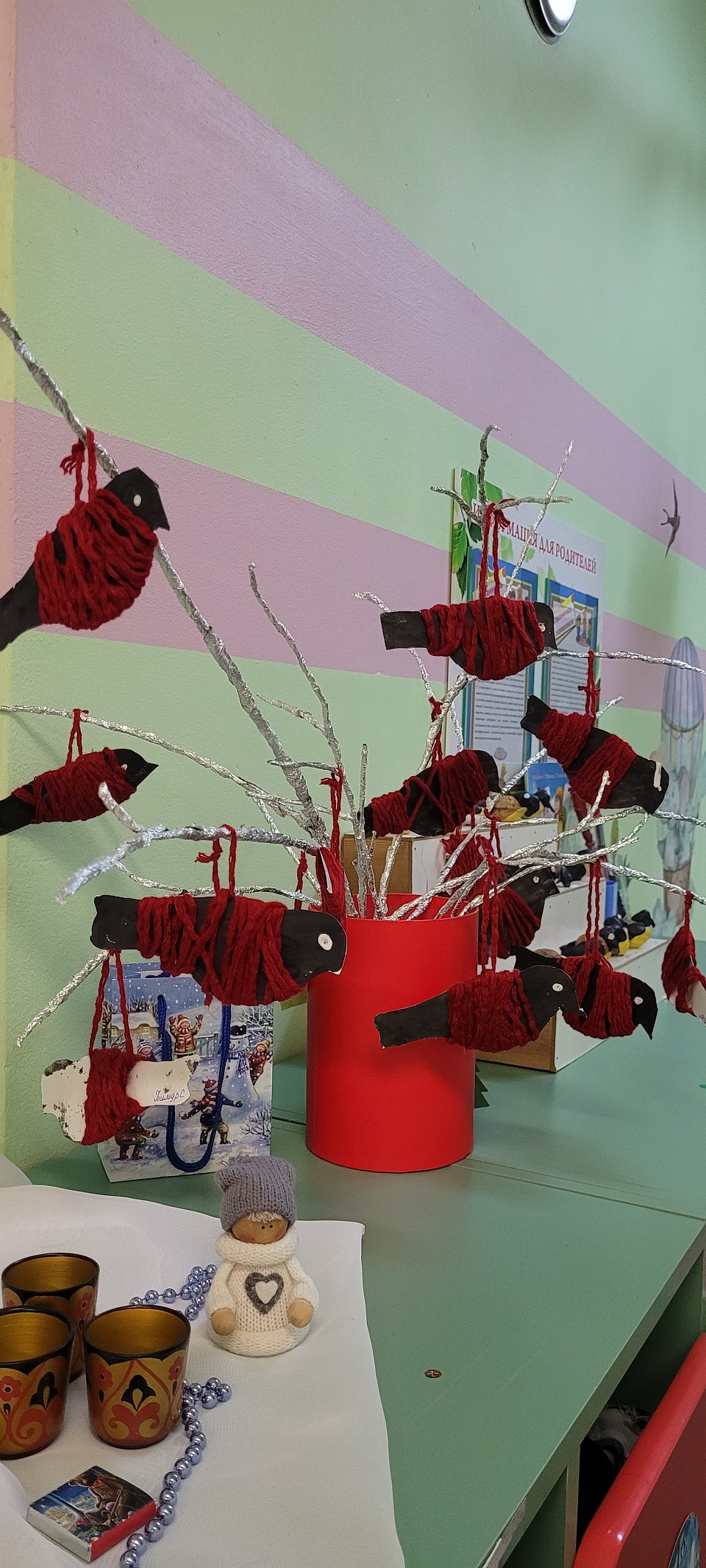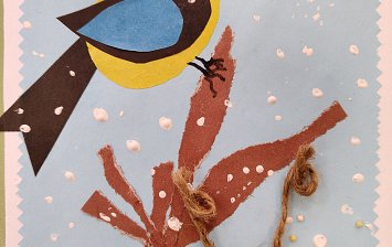 Поделка сделанная детьми из шаблона и пряжи.