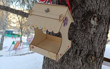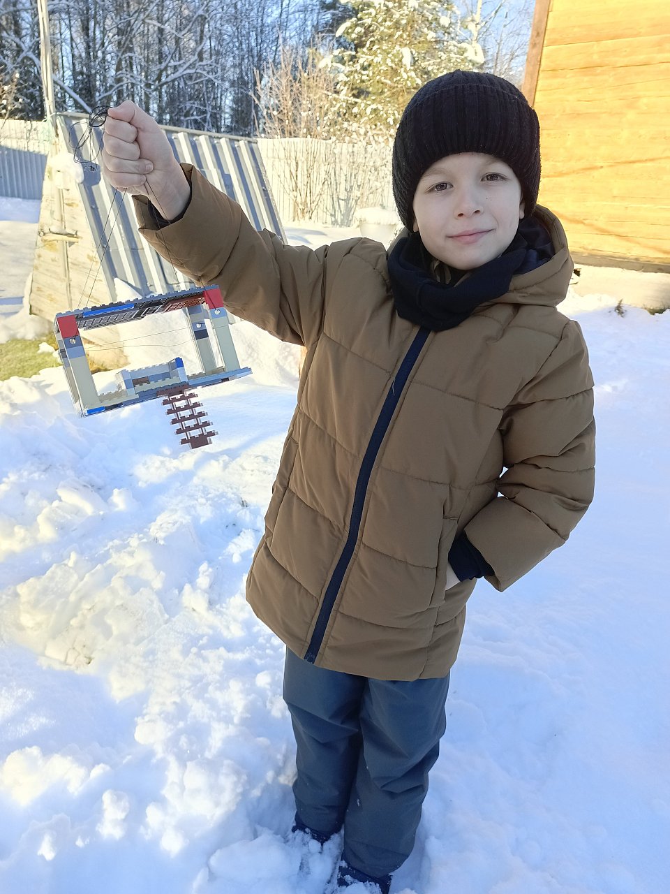 6 лет, кормушка выполнена из деталей конструктора, согласно задуманной идее.