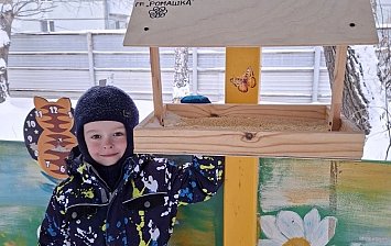 Возраст: 9 лет. Кормушки изготовлены из картонных коробок.