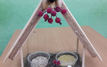 10 лет, сделали кормушку. Прорезали отверстия, натянули веревку, и будем вешать на дерево