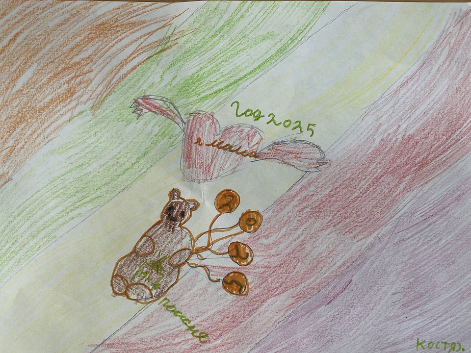 Косте 11 лет, в коррекционной школе, он выполнил рисунок с помощью цветных карандашей