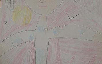 София нарисовала красками портрет свой мамы,в честь праздника. День Матери.