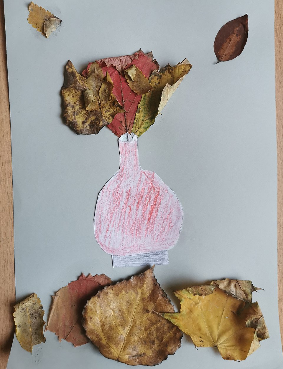 8 лет, поделка, использованные материалы : картон, цветная бумага, ножницы, клей, природные материалы ( сухие листья), карандаши.