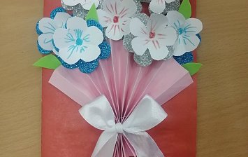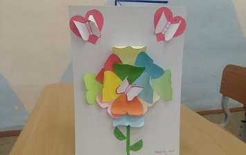 Работа выполнена Гостеевым Марком 7 лет из цветного картона с блестками.