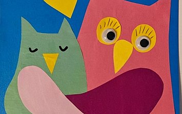 Возраст участника - 4 года Техника исполнения - аппликация (выкладывание композиции элементами, выкроенными из бумаги, на картоне - основе). Использованные материалы - цветная бумага и цветной картон, ножницы, клей, цветы из фигурного дырокола, глазки для творчества (чёрно-белые)