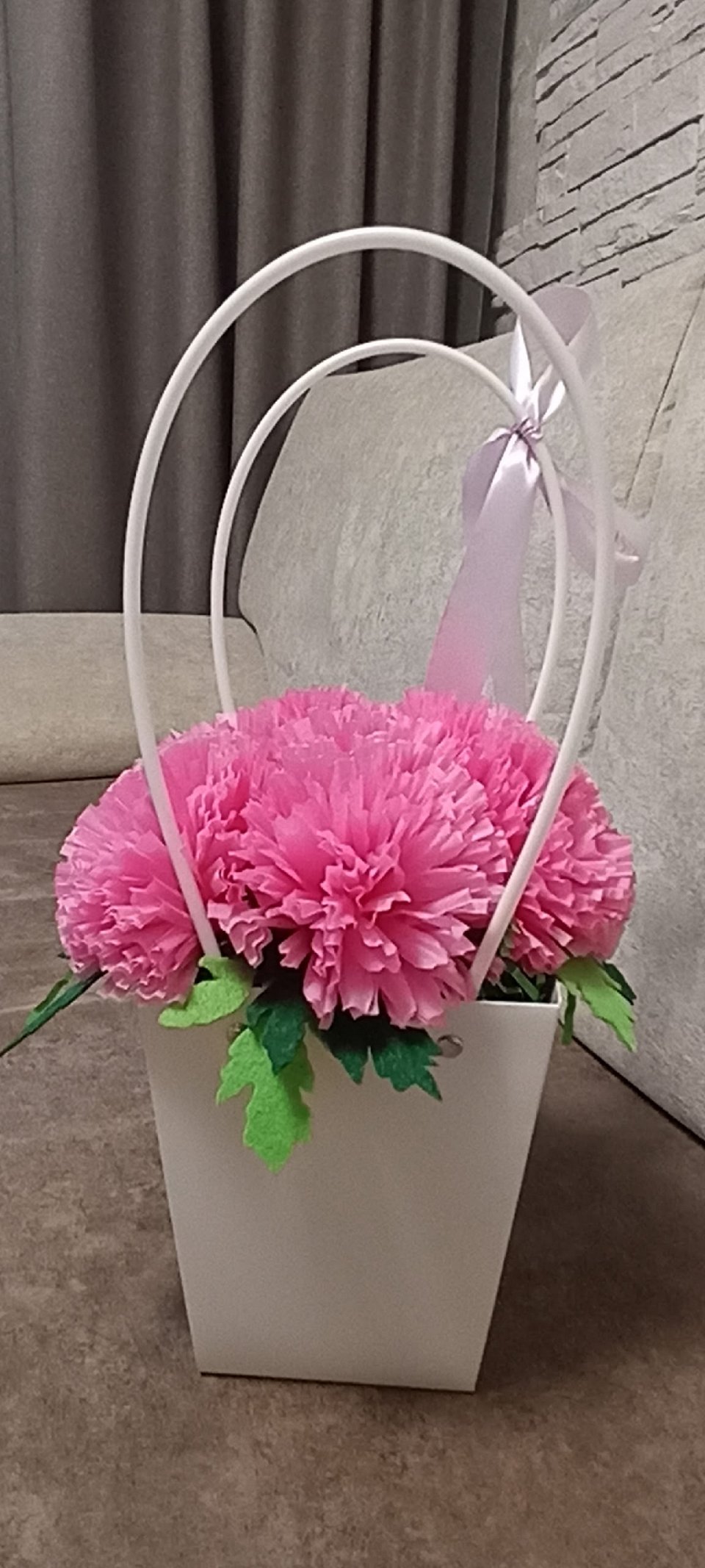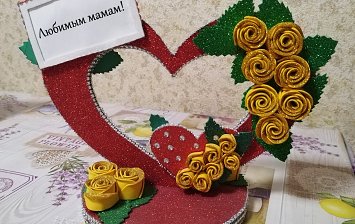 9 лет. Работа выполнена из розовых формочек для кекса и фетра