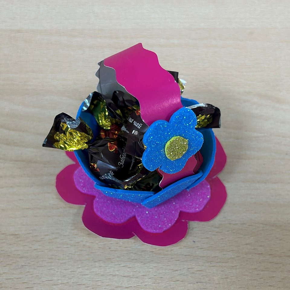 Использованные материалы: картон, фоамиран, серебряная нить, горячий клей