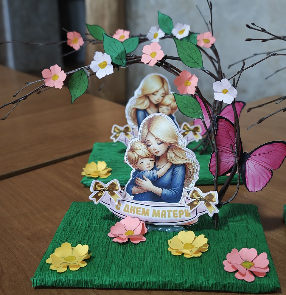 Возраст детей:5-6лет, аппликация из бумаги (вырезание цветочков и листочков, украшение детьми поделки),использованные материалы воспитателем -веточки березы.