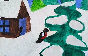 Работа выполнена нетрадиционным методом рисования - вилкой и пальчиком .