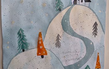 Использованные материалы: бумага, гуашь, кисточка, вода