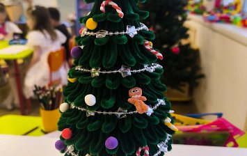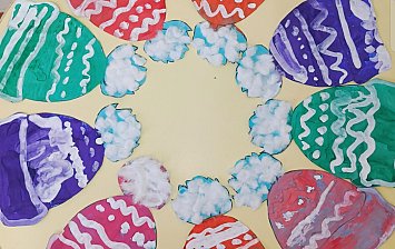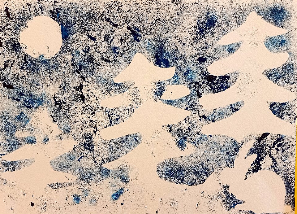 Воспитанница 6 лет . Нетрадиционная техника рисования губкой с использованием трафарета (луна, деревья, заяц)