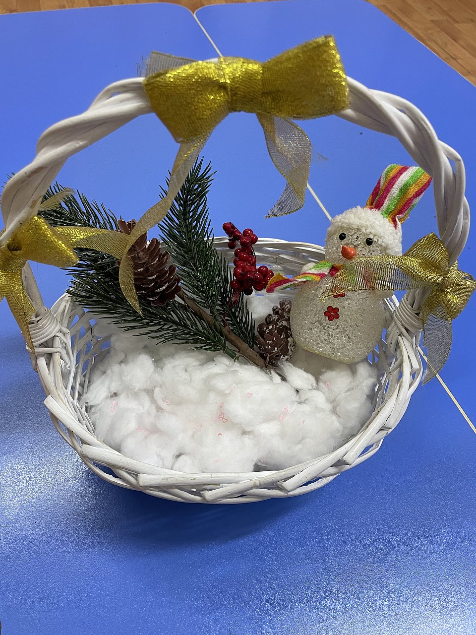 Поделка сделана из подручных материалов: вата, калиновая ветка игрушечный снеговик ⛄️