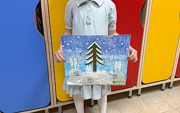 Диларе 4 года. Работа объемная аппликация из картона с использованием ПВА клея.