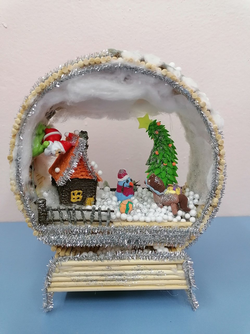 6 лет, поделка с элементами аппликации, лепки из воздушного пластилина, работа с 3д ручкой, ватой, стекольной проволокой, блёстками, шпажками