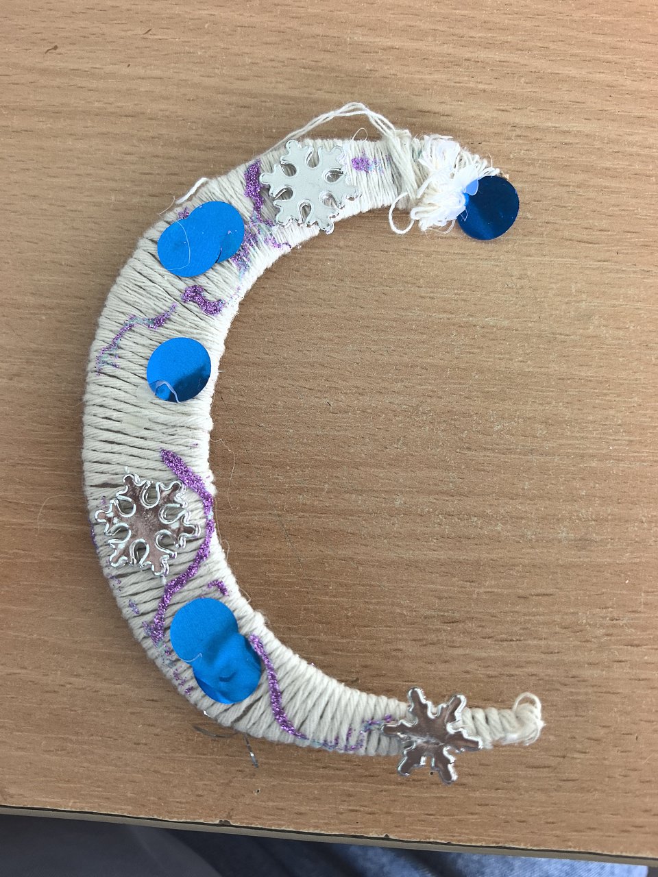 Развитие мелкой моторики, обвитие ниткой картона в виде месяца