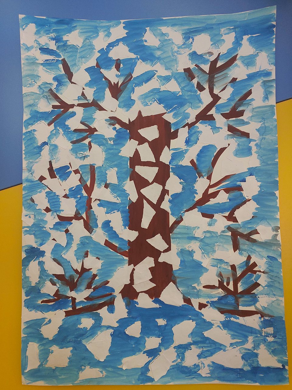 Возраст 2 года.Гуашь,клей-карандаш,белая бумага.Обрывная аппликация.