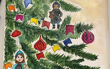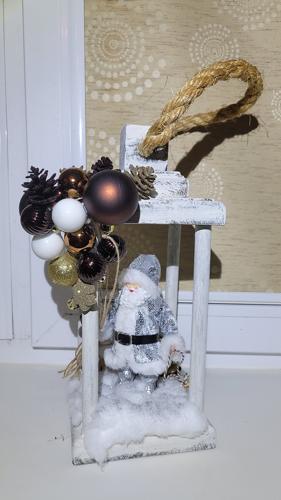 Возраст участника 10 лет. Материалы : дерево,вата,пластик,канат,гуашь белая,блёски серебрин собрано всё с помощью клеевого пистолета и пару саморезов.