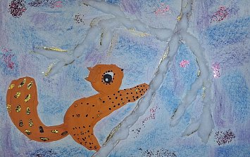 Поделка выполнена Лоханиной Марией, 7 лет. Использовался картон, синтепон, клей, елочные игрушки, леска.