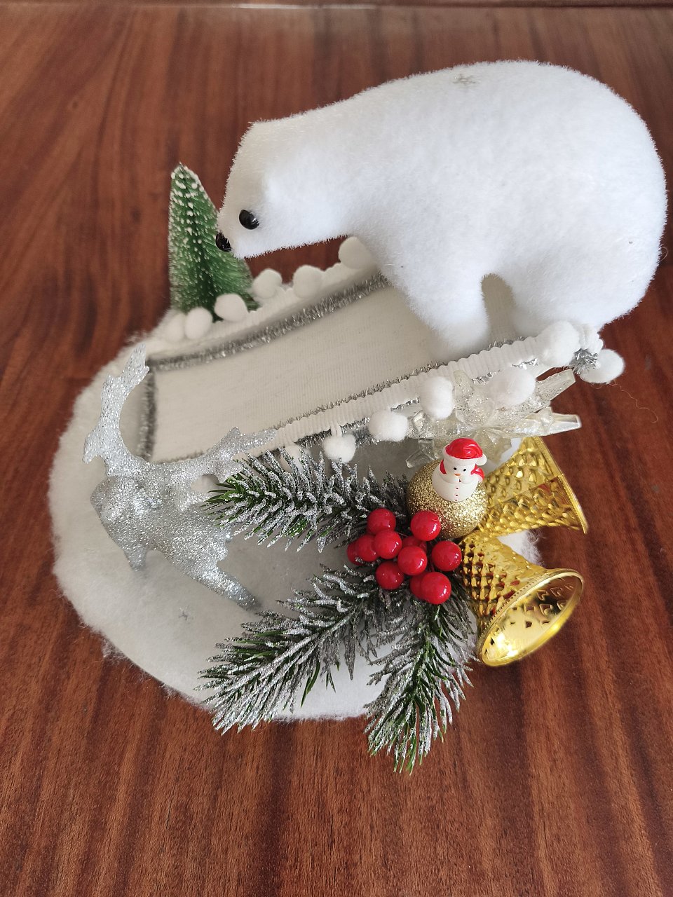 8 лет. Объёмная аппликация. Пенопласт, новогодний декор, бумага, картон.