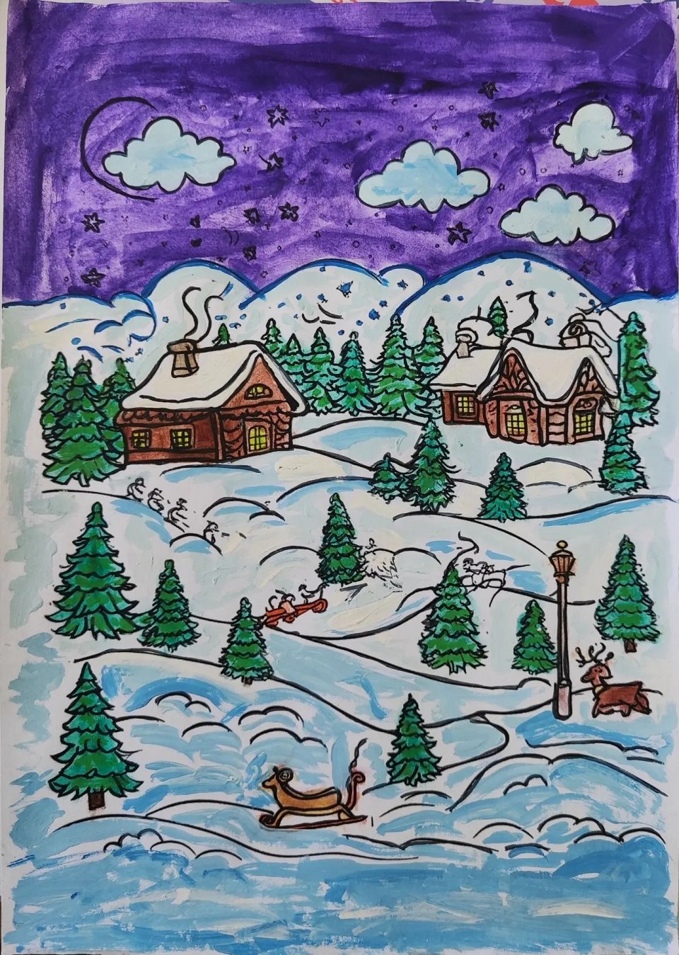 Работа выполнена с гуашью, фломастерами. Возраст участника - 10 лет